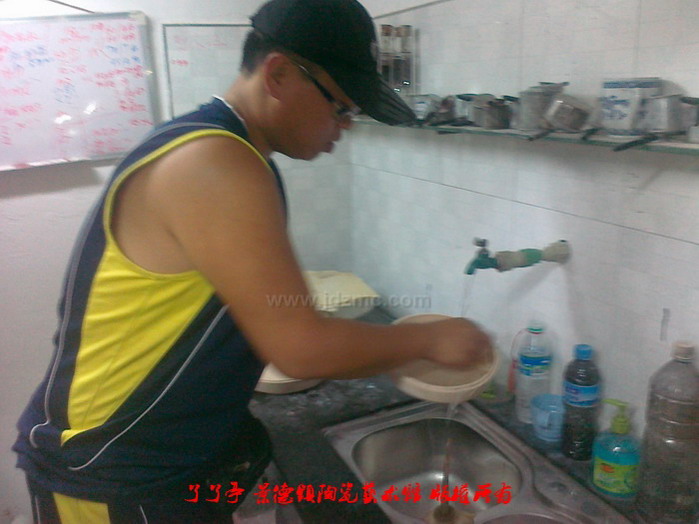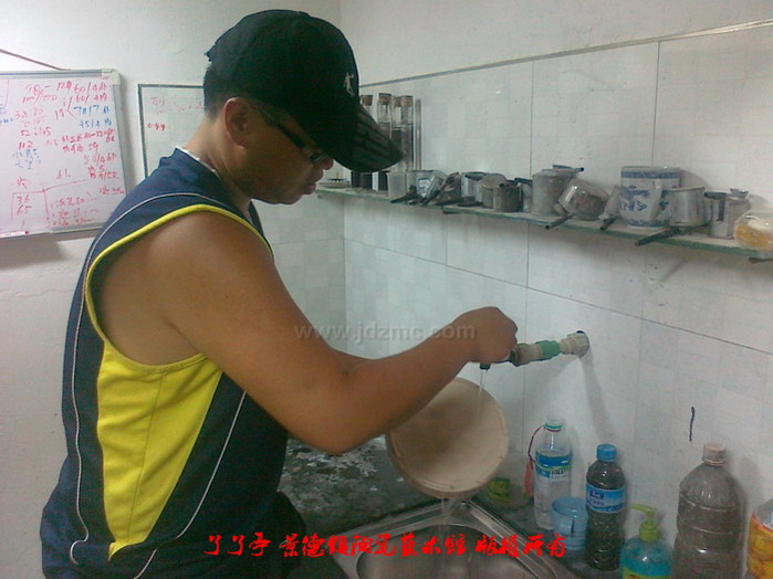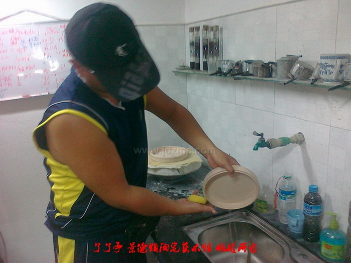 如图,这两个茶饼盒的泥巴坯笔者正在用水龙头直接冲洗,而且一洗就是几分钟,这不是魔术,只是泥巴坯经过了素烧。在经过700-1000摄氏度的温度素烧过的泥巴坯后,其坯体结构已经成型,能够抗压,抗水,而且施釉后,附着能力不变,对烧成基本没有什么影响。了了亭·李申盛/文