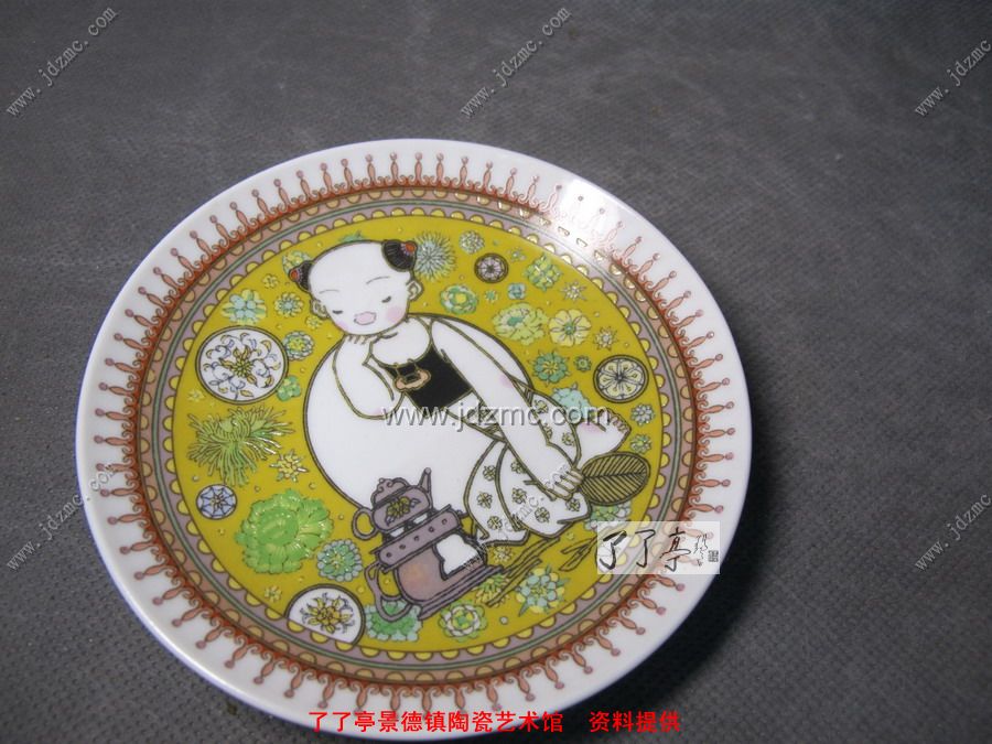 第一个是陶院建校的礼品,水点系列,花面是手绘的,可是字是贴花的。