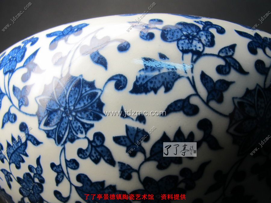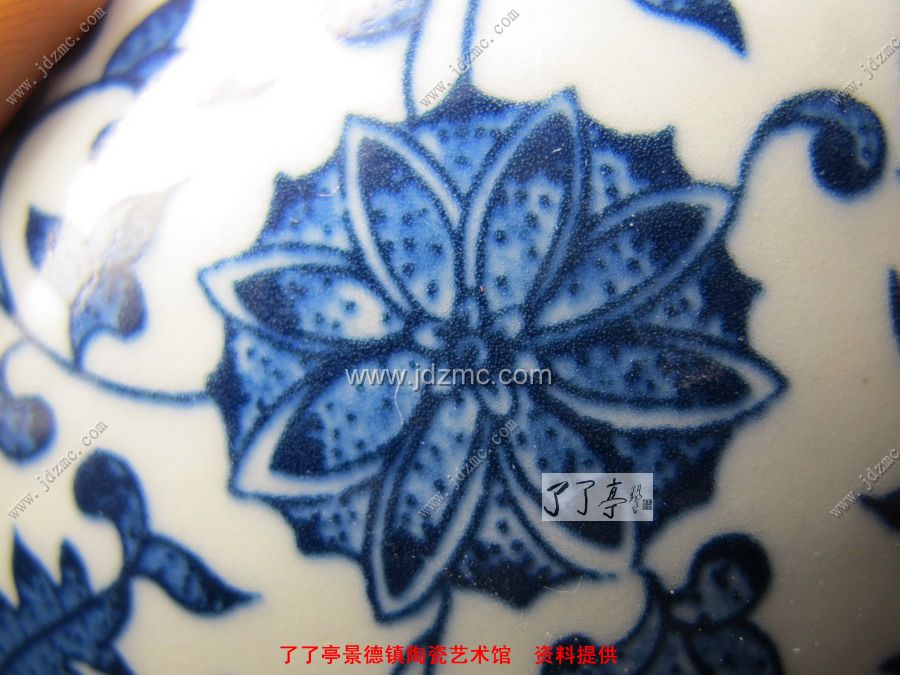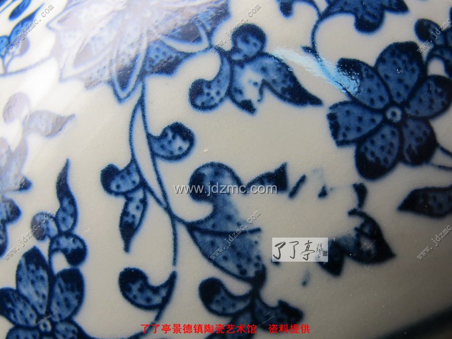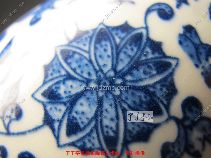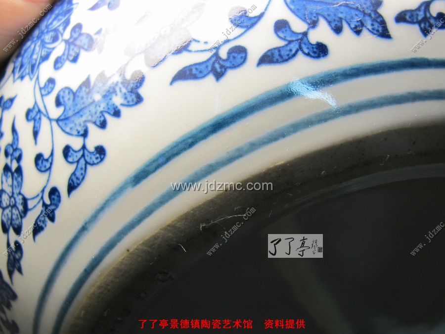 青花贴花的就不是很好鉴别,因为青花有一层釉体的保护,网状纹路不是很明显。