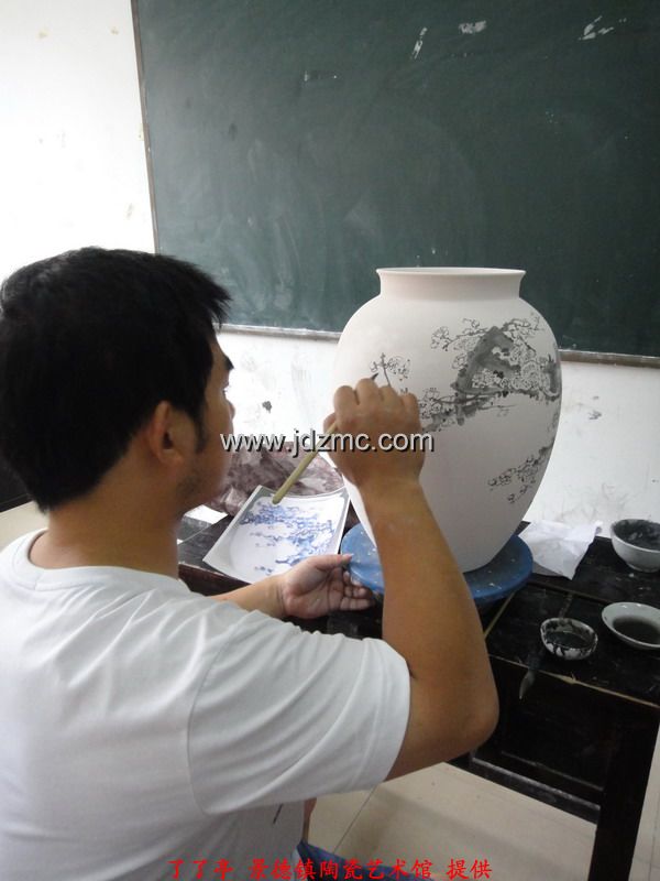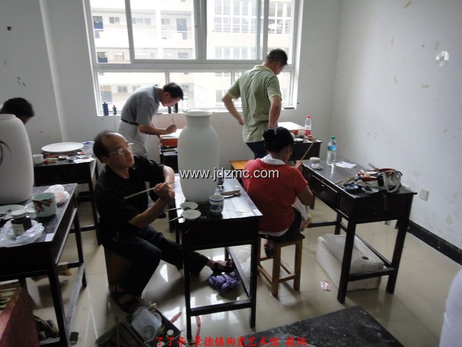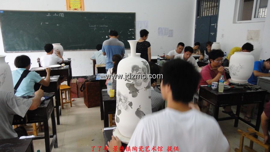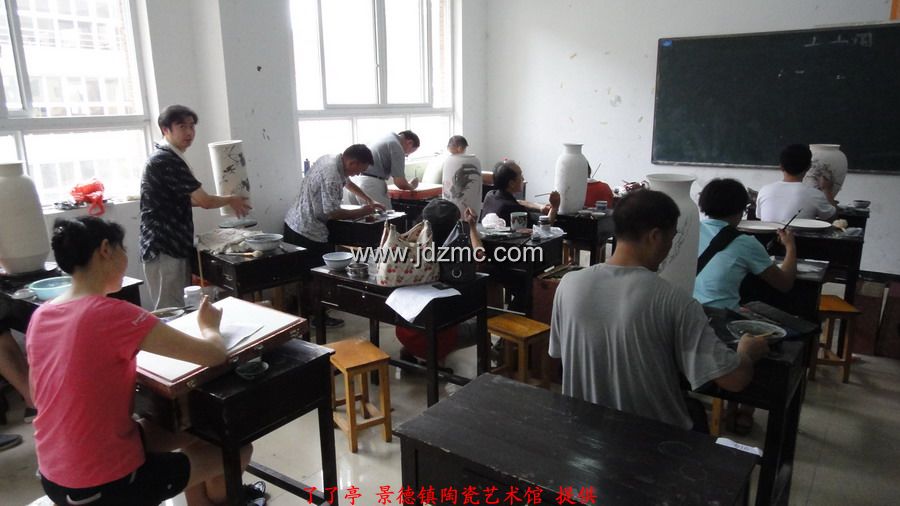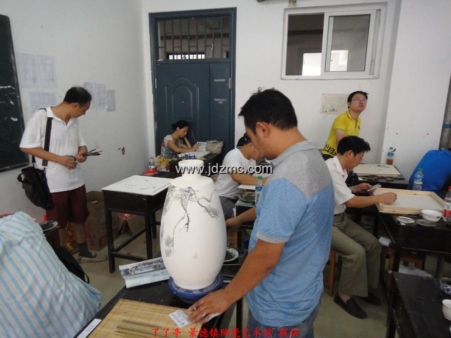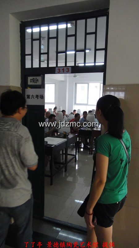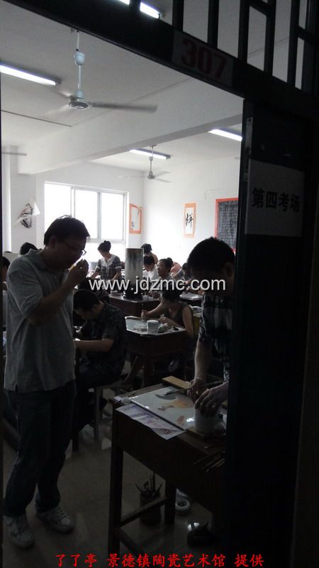 看着我一路风风火火,夫人也想搭上顺风车,而今年的景德镇高级陶瓷美术师已经不能直接报了,需要从初级,中级开始,我叫夫人断了念想。正好,景德镇在搞江西省技工,高级技工,技师,高级技师这一系列的职称,于是带着夫人去报了名。一开始考的是笔试,笔试成绩及格后,再参加现场操作,而职称最终评定是由笔试和现场操作的成绩总分决定。这一次我和夫人报的江西省高级技工,我全程陪同,应该复习的复习了,应该的画的也都画了,结果就不想它了。下面是8.8日在江西陶瓷工艺美术职业技术学院现场考试的实拍,任副院长的李文跃老师也来到了现场 。了了亭·李申盛/报道