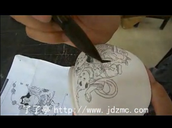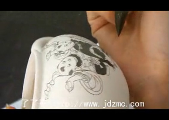在考试过程的间隙中,这位女士要进行小件青花分水的工艺,因为小件的青花分水的工艺不是用正规的鸡头笔而是用的较大的毛笔,分水工艺也与大件略有区别,因此,打开了视频全程的拍摄了下来。