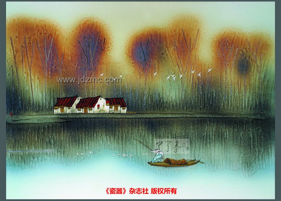 第一种,高温颜色釉以点缀的身份出现。在作品中,以整体画面为主角,以高温颜色釉为点睛之笔,用于表现人物衣服的毛领、花鸟身上的翎毛等。
