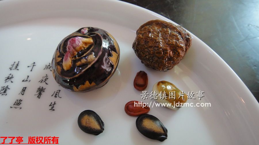 任何一件陶瓷工艺品,都是为了满足收藏群体的一种特定需要,而制作出来的。而为了满足收藏群体这一种特定需要,其中无论是成型还是后面的附属工序,都无不充满了门槛和玄机。但下面这种特种仿生的陶瓷文玩作品,不仅具有物质价值更多是一种精神享受。当我拿起那两颗瓜子的时候,我第一反应是放在了口中,准备嗑下去,当齿间和陶瓷西瓜子碰撞的那一刹那,我大脑里面突然反应了出来,这是陶瓷,不是瓜子,那种神情的恍惚,带来的是一种极其愉悦精神享受。所以,下一阶段,我准备攻克陶瓷西瓜子的成型的工艺,做工艺攻关是我的爱好,这玩意烧钱,也烧脑细胞,但是其乐无穷。