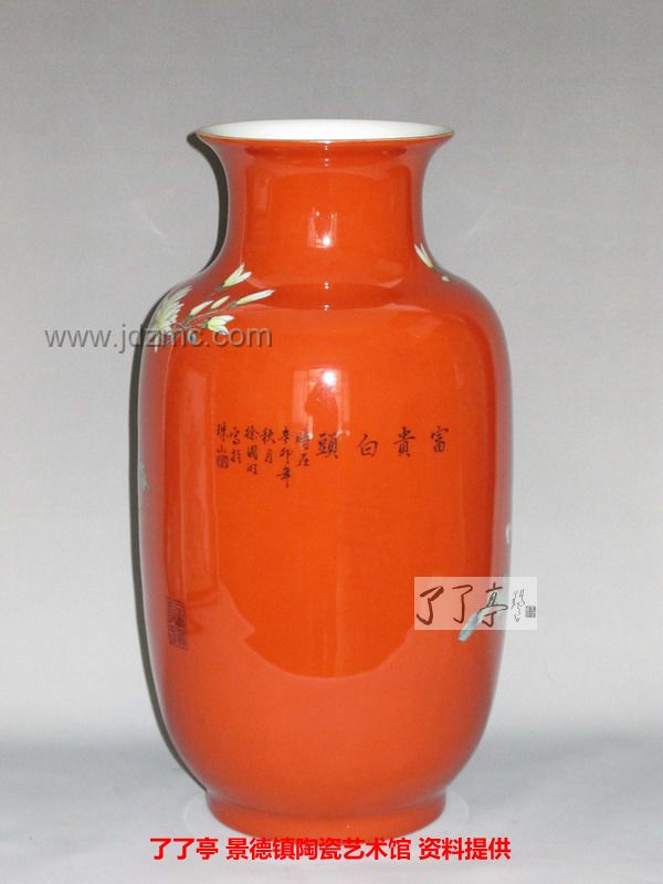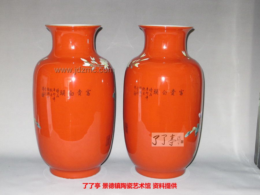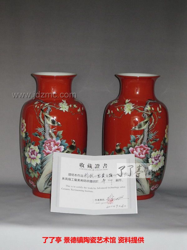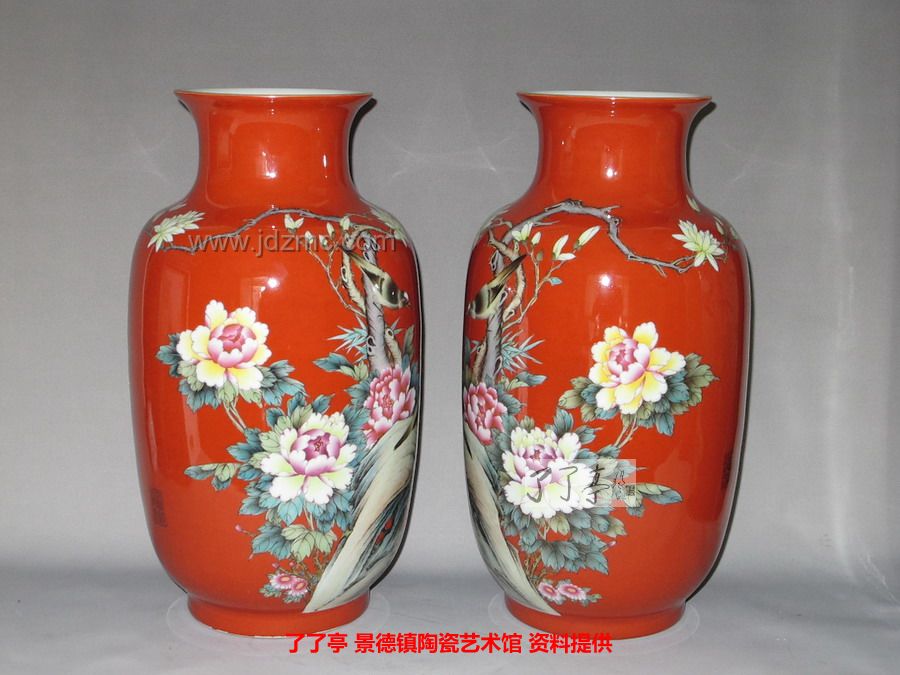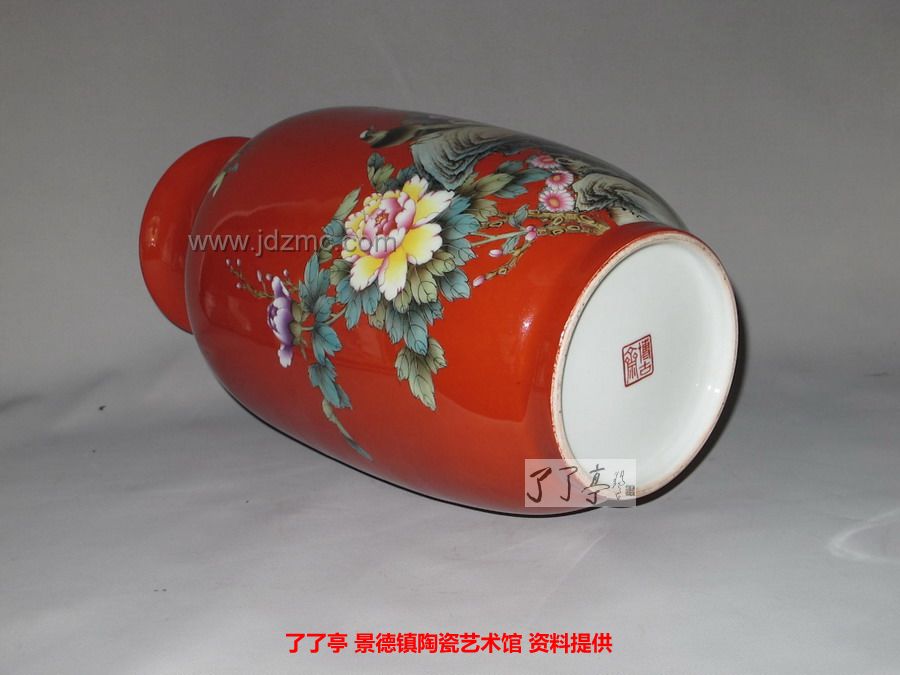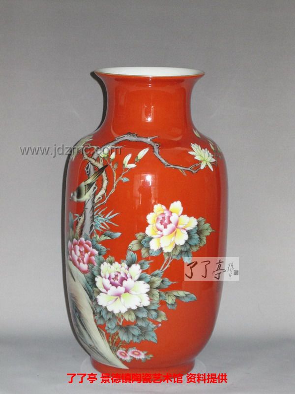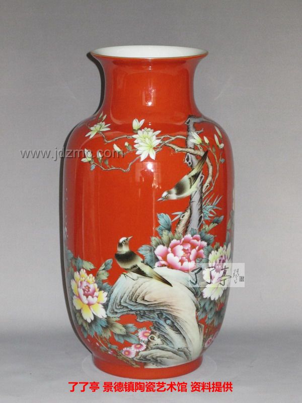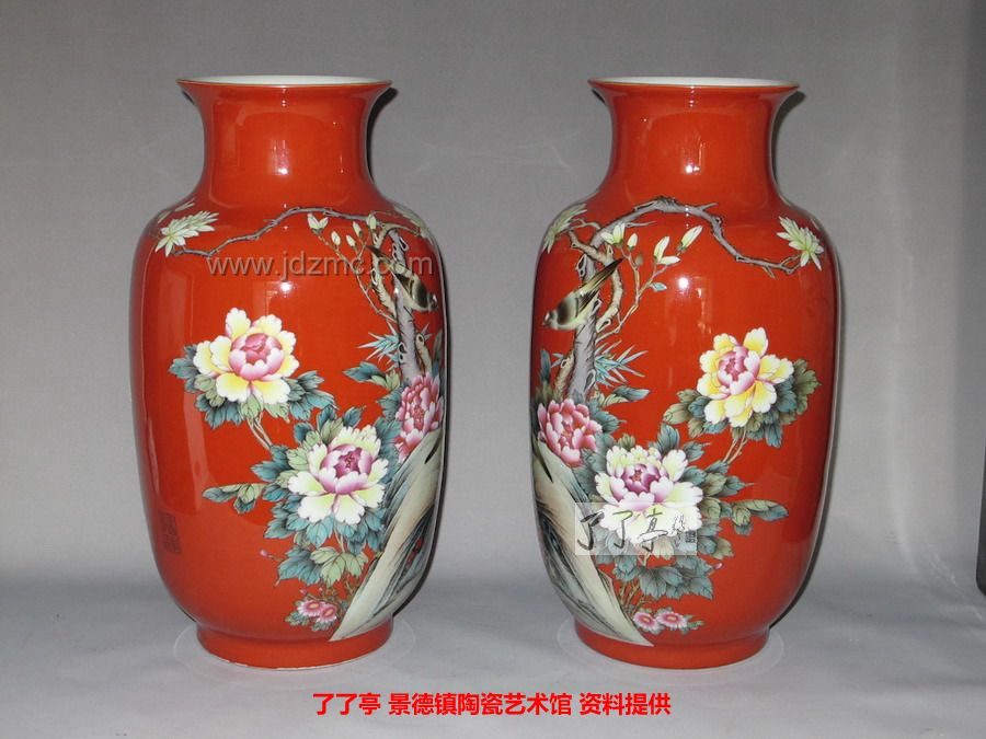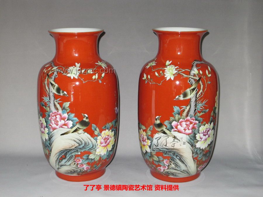 在釉上彩中以红地粉彩瓷的制作一直都是该领域一道难题,第一是釉上彩的烧成温度是700-800摄氏度,这么低的温度如何提高红地的亮度就是难以逾越的“一道槛”,另外红地色泽红艳、匀称温润、瑕疵毛病等客观要求,都是对于瓷器制作的一道考验。而在制作红地粉彩瓷器的工序中,除了第一道拍色以外,还需要对画面进行刮白出形,最后在配上合适的粉彩图案。尤为重要的是,粉彩容易被红色吸色,这里面主要是因为大面积红地的颜色很容易抢占粉彩的色泽,因而,粉彩颜色的使用,色彩与色彩之间的相互搭配,以及最终的效果都无疑给这种红地粉彩制作提高了很大的难度。