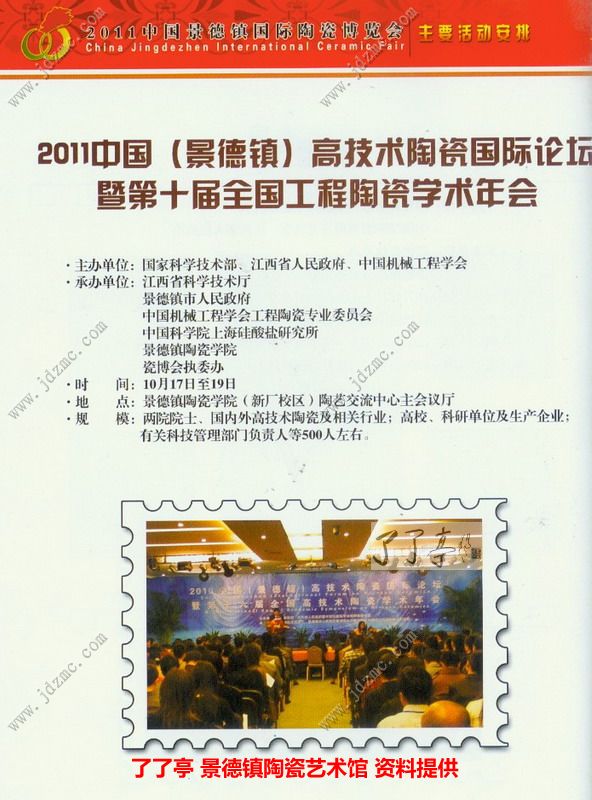 2011中国景德镇国际陶瓷博览会将于io月18日至22日在景德镇中国陶瓷博物馆举行。