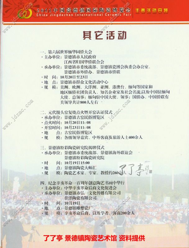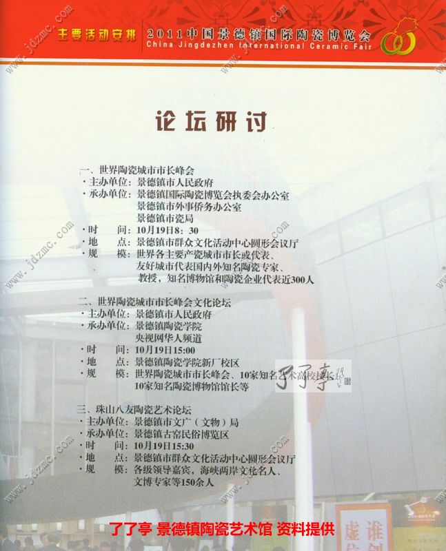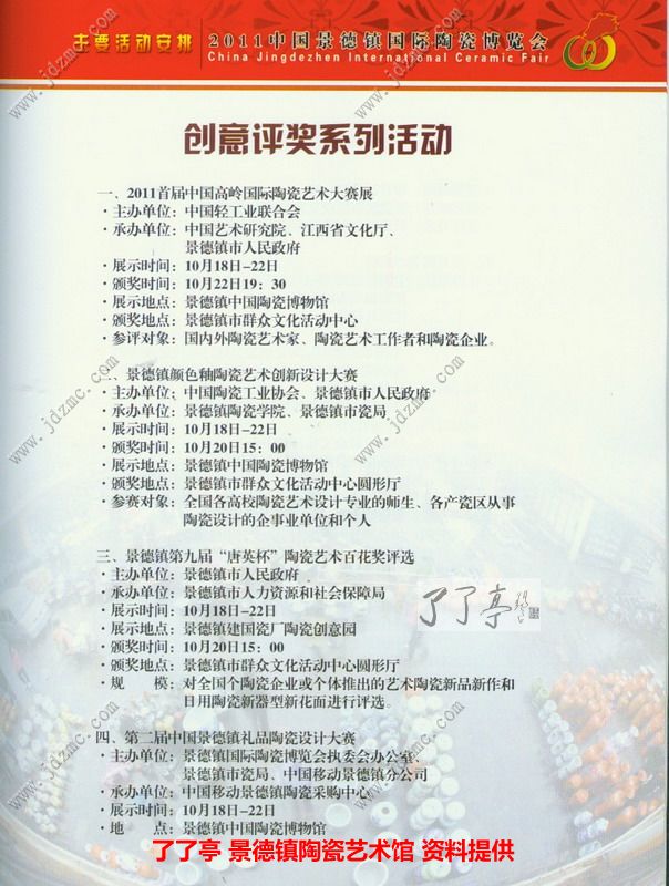 2011年中国景德镇国际陶瓷博览会 主要内容如下