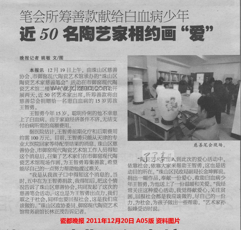也正是这种点滴之善,见证着景德镇瓷业的成熟与发展,推动着陶瓷艺术家们慈善事业的进步。虽然大多只是数位艺术家自身组织成的一次“微公益”活动,它的影响面,他们的经济效益似乎并不能对“王智勇”起着决定性的作用,但是,这样一批参与活动的艺术家们,所倡导的重在参与、自我奉献的理念,也为现实社会的慈善模式提供了有益的借鉴。