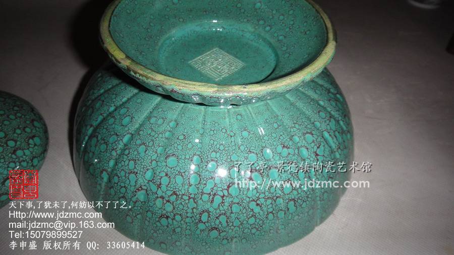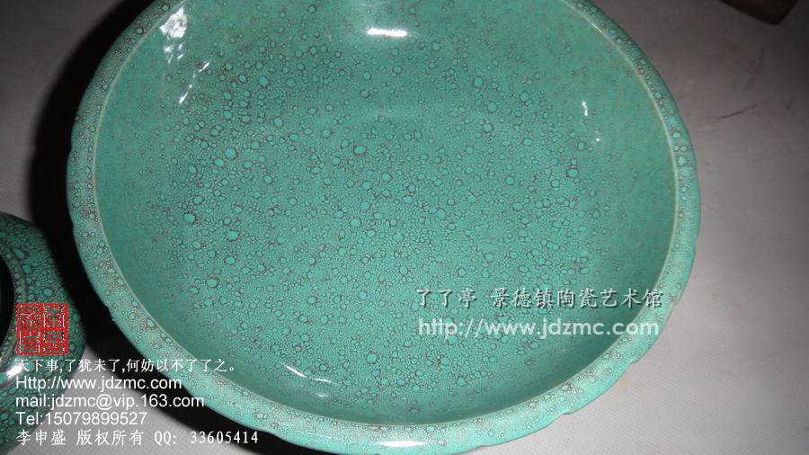 据我对炉钧的了解是慈禧大寿的时候,由景德镇朝贡的一套炉钧釉小件,后来在国外的拍卖行以天价拍出。由此,我对炉钧釉的神秘性一直都在探究。昨天,母亲和我出去了一下午去发掘好的炉钧,可惜一下午只找到了两件。回顾历史,炉钧釉瓷始造时间是清朝雍正年间由景德镇创烧的一种低温釉瓷器,其制作方法是由1300摄氏度的还原焰高温条件下将不挂釉的泥胎烧成素胎,然后在瓷胎上施以含铅量较高的低温颜色釉,再经低温800-900摄氏度炉火氧化焰烧制而成。由于釉面具有仿钧窑的特色,色泽丰富,红、蓝、紫、白等颜色融为一体,主要特征是以流淌,或者斑点状的分布,使人感到变化万千的自然美,所以被人们称为“炉钧瓷”。了了亭十多年来,在景德镇发掘的炉钧釉从已经消失的蓝炉钧釉,到中间昙花一现的红炉钧釉,再到现在出现的红,绿炉钧釉。景德镇很多颜色釉正在随着作坊的消失,也在景德镇陶瓷历史上也随着消失了。因为太多的颜色釉制造工艺是掌握在个人手里,加上颜色釉成本大,收益低,很多颜色釉从业者都处在很尴尬的境地,而他们手头上掌握的大量颜色釉制造工艺一旦不做了,想恢复不但需要投入巨资和时间,更有可能是千古遗憾。了了亭 李申盛/文