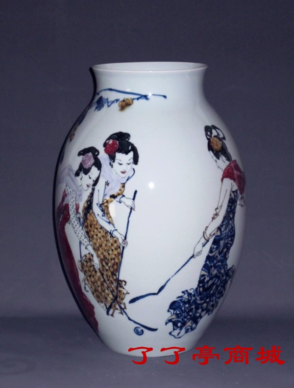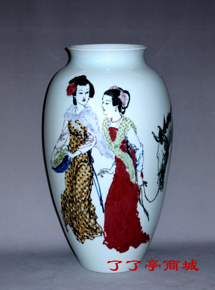 就是这样一个李一新,从纸质的国画进入瓷质的釉下瓷画,他悟到了一个极好的切入点,这个切入点不仅充分展示了他的艺术想象力,体现了他特有形象记忆能力、造型能力、色彩感受能力、对高温颜色釉的深刻理解。无论仕女还是老相(男士)均是气质优雅、端庄雍容、气度不凡、潇洒风流。他的画风中既有西画中强调的色彩和光影明暗,又有中画的神似风采,还有一种景德镇陶瓷艺术特有的祥瑞、华贵。这三种文化艺术精华的有机汇合,使李一新的陶瓷创作能在当代众多的“名人名作”中脱颖而出,诠释出他独有的个性强烈的艺术符号,引起收藏界高度关注、重视。