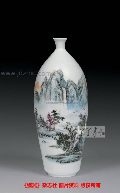咏叹调是作曲家们英雄用武之地,是演员们宝贵的驰骋空间,咏叹调表现高难、高超、高水平的演唱技巧。几乎所有著名的歌剧,主角的咏叹调都是脍炙人口的佳作。艺术是相通的,汪桂英的创作是陶瓷艺术的咏叹调!景德镇当代艺术瓷中“青绿山水”是一大流派,以汪桂英为代表的陶瓷世家“汪派山水”又是其中的主流。汪桂英以她杰出的人品,优秀的艺品是当仁不让的主角。2011年6月份,得知她头部和腿部连续大手术之后健康状况好传,要求她儿子安排我们探望。门一开,只见她精神饱满地坐在椅子上笑着招手,看到她这样,我顿时心情舒畅。那天在汪桂英的画室,她的儿子曾良给我们看了一个瓶,告诉我们这是他妈妈病前画好的作品,粉彩是病后填的。我惊讶地抱着瓶子问:“你妈妈亲自填的彩?!”曾军很平静地回答:“是的!我妈妈从来是自己画,自己填的。”呜呼,这首咏叹调唱得太激越了!当今收藏大潮中,有多少带着各种头衔的“艺术家”为了多产快出,恨不得画都要别人代笔了,而我们80岁刚动了两个大手术的汪桂英老人家,却坚守着这份道德、这份责任、这份自尊!高山仰止!想起了老子《道德经》:上善若水,“水善利万物而不争,居众人之所恶,故几于道。居善地,心善渊,与善仁,言善信,政善治,事善能,动善时。夫唯不争,故无尤。”