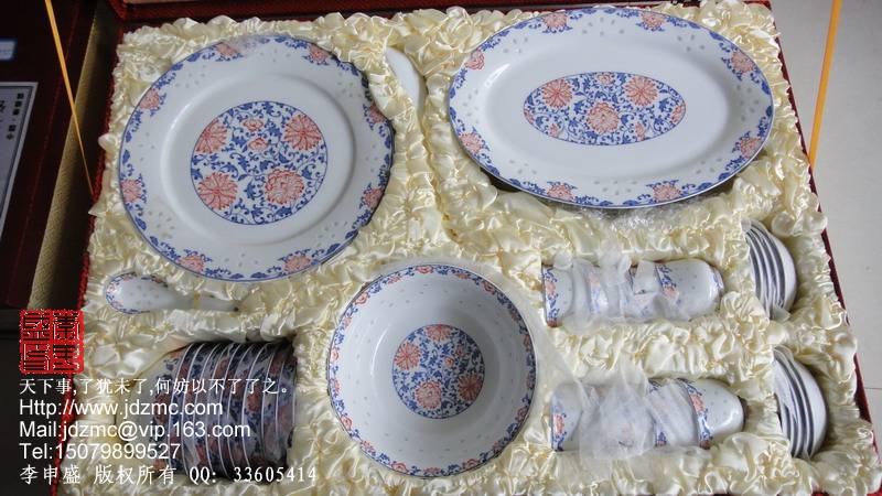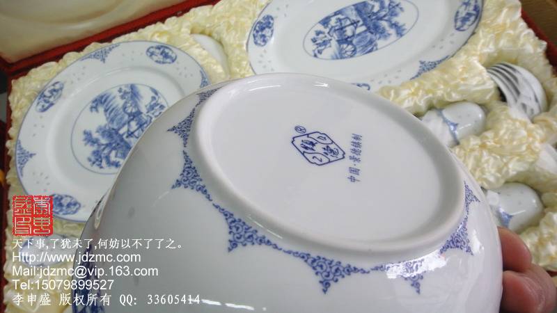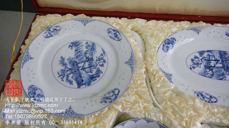 八,包装,景德镇青花玲珑陶瓷的包装基本上是通用的,也就说,包装盒您另外选择,但是我个人还是尽量挑选那种带原配包装的,因为原配包装一般设计的都很漂亮,送礼很拿得出手。另外,包装也分为封闭包装和定型包装两种,封闭包装就是将盘子,碗等各类,用单独纸盒包装,然后放在一个大盒子里。这一种一打开看不到瓷器,虽然漂亮是漂亮但是华而不实。所以我喜欢那种定型包装,一打开就看到瓷器,那种感觉超好。了了亭·李申盛/文