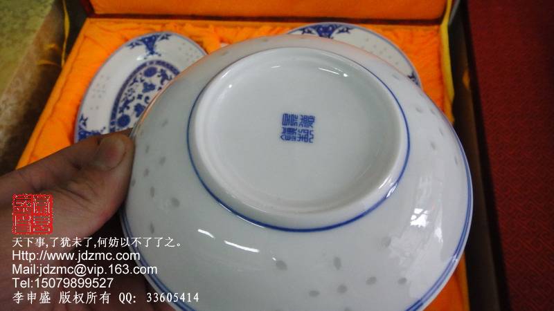 六,景德镇青花玲珑陶瓷餐具的残次品等级基本分为如下,无瑕(FL)、内部无瑕(IF)、极微瑕(VVS)、微瑕(VS)、小瑕(SI)、重瑕(P)。呵呵,这和我搞钻石分级,没有任何区别的哦,我就是将钻石分级用了过来。其中FL级别也就是完美无瑕级的,在陶瓷历史上应该罕有,陶瓷就没有挑不出毛病的,哪怕就是给帝王进贡的也是如此,这就是无瑕不成瓷是这道理也。所以呢,IF的这种才有可能,换算成景德镇陶瓷的评级的话,应该是肉眼无瑕级别,也就是我李申盛这样一位高级珠宝鉴定师的眼睛,高级钻石分级师,以及这样一个专业做陶瓷色釉及成型的江西省工艺美术师的眼睛,一眼过去找不出毛病的,就是IF级别。剩下的就好说了,VVS,换算为李申盛肉眼可见瑕疵级别,主要包括,微小的缩釉铁质黑点(极小)等完全不在瓷器主要表现面上且数量小于等于一,。VS,换算为李申盛肉眼清晰可见瑕疵级别,主要包括较大铁质黑点,较小缩釉等,数量大于等于一,小于等于三,且也不在重要瓷器表现面上。SI,换算为李申盛肉眼清晰可见瑕疵级别,各种问题等,大于等于三,但是瓷器本身完整,包含形变。P,换算为李申盛肉眼完全不过关级别,这种瓷器,丢了算了。