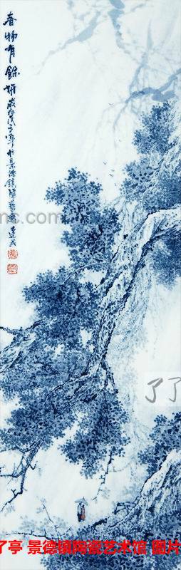 在年青艺术家中,他的造型能力强,新题材层出不穷,尤其近几年青花山水的创作中,他用一种全新的工艺手法,全新的理念去诠释青花。用笔工整严谨、水墨洒脱,构图丰满和谐、雅拙推巧,呈色青翠沉隐、滋润恬逸。他用他的青花创出一片新画意,深受艺术界的赞赏,收藏界的热捧。这么多年来,他不负期望,一直保持着进步与常新。与他接触,常会有士别三日,当刮目相待的深切感受。