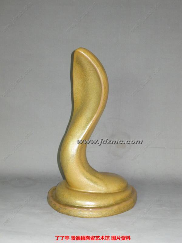 从历史上的十二生肖的产生,有着天文学的背景。在原始时代,先民们体验着寒暑交替的循环往复。年又有观天者发现月亮盈亏周期可以用来丈量岁的长短,发现十二次月圆为一岁,这一发现,是初期历法最精度的成果之一,“十二”便视为传达天意的“天之大数”。天干需地支为伴,日月相对,天地相对,就非“十二”莫属了。人们不能确定12生肖的确切来历,但因为它的通俗、方便又具有趣味性,所以一直沿用至今,成为古人留给我们的一种仍有实用价值的宝贵遗产。因此,笔者为您带来的是十二生肖之蛇“金蛇起舞”限量1000号的雕塑作品,这件作品施的是高温颜色釉,1320摄氏度还原焰烧制,其色彩在光线下会有无数丝状的金光闪烁,漂亮至极。了了亭 李申盛/报道