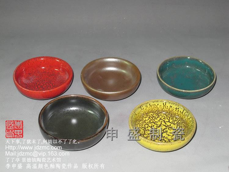 颜色釉之美是与天地同寿,万物齐辉,过往千年,你在或不在江湖,我都在这里的。五色盏是在徐国明老师五行壶之前由我设计完成的,五行壶应该说是在五色盏上更为深层次的一种拔高,徐老师在赏得我五色盏之后,便有了配套之冲动,无论是器型,还是胎质,乃至色彩的甄选,无不立意传统,适宜创新。使得这些美器在怀旧的色彩烘托下,让人想起张曼玉穿着缤纷旗袍,诉说一段红尘过往。 了了亭 李申盛/文