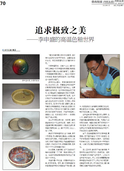时光荏苒,在景德镇,他不仅能够游刃有余地经营着“了了亭”陶瓷收藏专业网站,也逐渐在陶瓷高温色釉领域闯出了自己的一片天地。