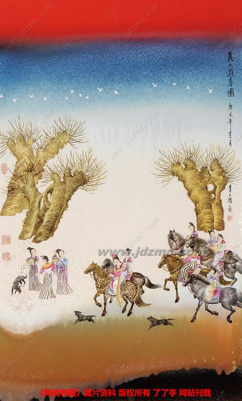 曾经,几乎横贯欧亚大陆的“丝绸之路”将东西方文明紧密联系起来,而处于“丝绸之路”枢纽地位的西域,正是在东西方文明的碰撞中形成了厚重的历史和独特的地域文化体系。以“丝绸之路”为题材的绘画作品汗牛充栋,而李文跃则借助其独特的工艺与艺术语言在瓷面上铺陈开别样的丝路风情。
