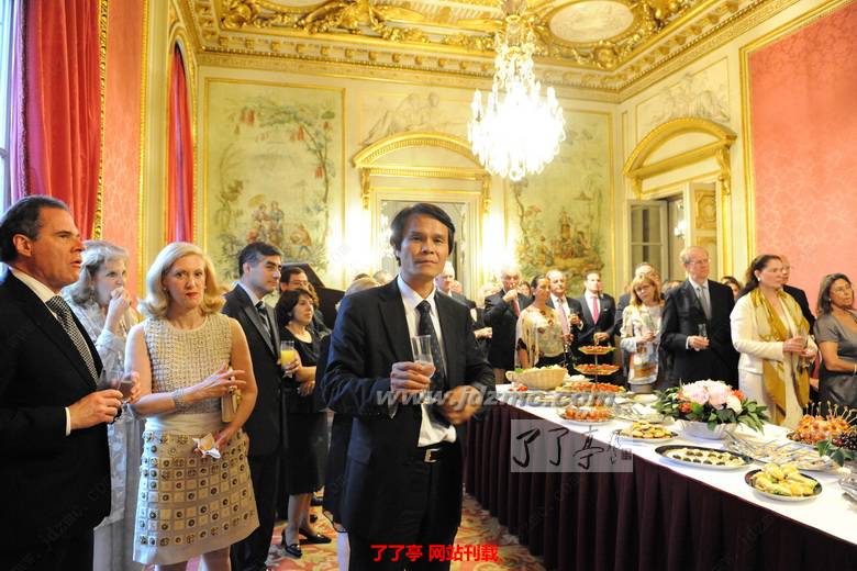 2013年6月16日宁勤征同中国艺术家和代表在金碧辉煌的凡尔赛宫里参加欢迎宴会和展览开幕