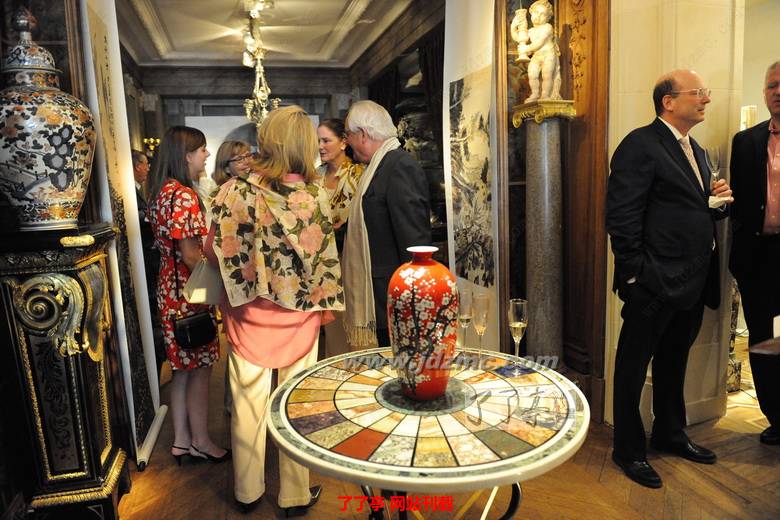 2013年6月17日宁勤征创作的高温中华红颜色釉堆画装饰梅花《香飘万家》作品在凡尔赛宫展出