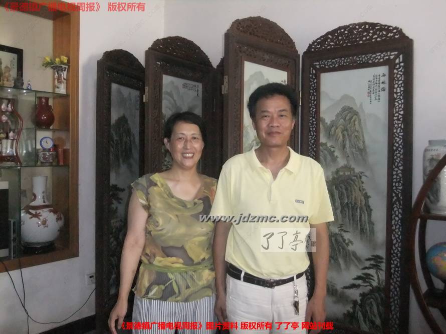 余劲松和妻子七十年代中期,就在景德镇新光瓷厂工作。余劲松兄弟姐妹六个,家里可以说是一贫如洗。当年结婚时,父亲给了余劲松100元钱,只够他俩买套结婚的新衣服。妻子家条件好得多,家里只有三兄妹,而且她的父母也很宠爱这个女儿。他们夫妻俩一直认为这是他们的缘分,经济生活最苦最艰难的日子,其实也是他们营建幸福生活的最美时光。婚后,他们俩人工资加起来有80元,但生活在他们的共同努力下,很快得到了改观。那时夫妻俩住在沿河小黄家横弄,余劲松的妻子贤惠、手艺又好。太阳在河对岸刚刚探出头时,他们就起来画一大堆瓷器蓝里的薄胎瓶了。画完后,他们再去厂里上班。夏季的夜晚,他们经常在灯下挥汗如雨,有时一直画到天明。那时,他们俩除了工资,每个月赚的外快就有数百元。婚后,妻子把所有的家务活都揽下来了,让余劲松可以专心画画。随后,他们的儿子又出生了,他们有了爱情的结晶。