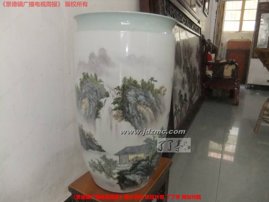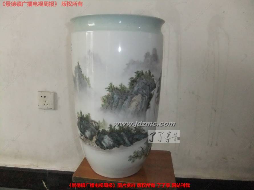 如果说爱情的力量会让艺术家在艺术创作中充满灵气,那么爱情的另一个伟大之处,就是它能够创造生命奇迹。当年妻子被检查出患病时,她的肾功能就已经衰竭到第一阶段,水电解质也已经紊乱。有和余劲松妻子同时得这种病的人,早在很多年前就去世了。而在采访时,余劲松的妻子还不时与笔者谈笑风生,一点也不像有重疾在身的人。当我们面对余劲松那些超然世外的山水瓷画时,心头不能不轻轻掠过一丝丝温馨的爱的清风。它让我们相信,这样的清风吹过,再枯萎的枝头也会回黄转绿,也会绽开芬芳的花朵。