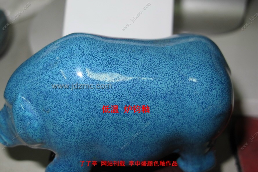 第三个就是低温釉了,绝大多数成瓷温度在1000摄氏度以下,而且是在已经烧成瓷的瓷器上二次施釉完成烧制。其中景德镇低温釉的代表性作品是炉钧釉,(如上图),它是在成瓷上施釉,利用铅等低熔点的物质进行釉面结合与反应,从而产生出各种各样的窑变效果。另外就是舶来的湖南中国红等低温单色釉种类,这些舶来的品种在1000摄氏度以下即可完成烧制,且成瓷釉面的亮度也不逊于中,高温陶瓷,且操作过程中,难度小,瑕疵率低等的特点,已经在茶具和装饰陶瓷中大量使用。在低温釉中,目前来看,只有炉钧釉这个大系中会有复杂的烧制效果出现,而其他的品种大多数仅仅只是单色系,适用于批量生产。至于安全性上,除了炉钧釉不适合饮用外,其他单色釉品种从目前提供的数据上分析是安全的。