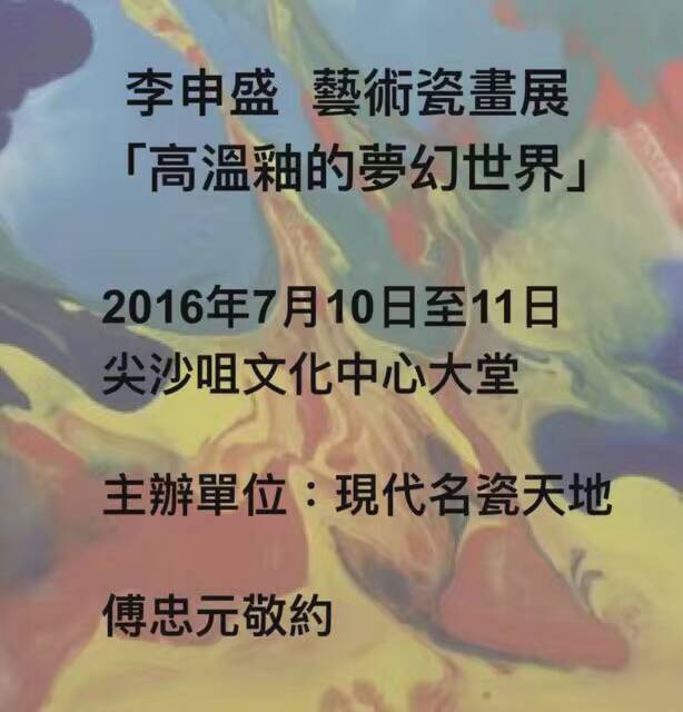 2016年李申盛“高温釉的夢幻世界"瓷畫展(香港,尖沙咀文化中心)