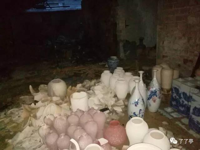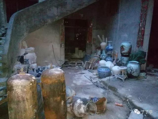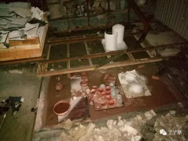 是啊,苦涩,这么多的釉料是围绕着这个温度和气氛研发的,本以为就会这样和窑老板一起合作下去,且不谈窑老板治伤,赔偿,重建这些事情,估计小半年是没法复原了,甚至老板可能就从此不从事这个行业了。我不得不将面临着重新寻找烧制的大窑,老厂周围窑虽然多,远的去不了,就是去的了的,窑温和气氛未必能够合拍,我这些成品就是换了批次的釉都会产生截然不同的效果,更何况要换窑,这以后的成品质量堪忧啊堪忧。摇摇脑袋,先把这些情绪压下去,我再次联系父母,父亲不久后赶了过来,随即等着运坯师傅去取了逃出生天的那些瓷板运回工作室,一段段事情忙完,天擦黑,我们才到达了出事的窑口。搬开东倒西歪的院门踏入其中,三个大煤气罐放在院子前,两个完好,一个支离破碎,环顾四周,残垣断瓦,满目苍夷,热浪滚滚,旁边还有邻居不停提醒我不要往窑炉方向去,那里随时可能再坍塌,我感激的应了一声,但不是好奇,也不是收集素材,因为那里还有我40个杯子的坯,还有一种莫名招呼着我往里走的情愫。小心注意着脚下的瓦砾,我打着手机一步步迈了进去,窑房的温度极高,混杂着一种消防灭火后的潮湿气味,一个大窑车停在导轨上,巨大的气浪已经把搭建起来的2米高棚板全部推倒,窑车下是我的四个装杯子的木板,大水已经把釉全给洗掉,棕色的釉浆混着高岭土垫饼泡开的泥水四溢周围。再抬头,巨大的窑炉和坍塌的二楼楼板混在了一起,一根楼柱已经消失在视野之中,窑房周围全是气浪和被气浪裹挟的物体炸开的大洞,通过大洞我都能看到隔壁邻居在那里活动。后面传来父亲不断催促我出来的声音,而我置身在这种几近悲凉的灰暗中,在弥漫着危险的气氛里,却感觉到一种心安,人生际遇或者有能够刹那结束,让一切毁掉,掩埋,生活可以重新选择,重新开始,让我能去做自己想做的事,想过的人生,多好。但,我还在这里,还在景德镇,还在这片废墟上,这座陶瓷的坟墓里,我得继续,继续。于是我迈下台阶将四块木板上的泥坯扫开,一一拾起,转头走出了大门。身后落下的夜幕,随着摩托车的轰鸣,再一次将一切遮盖。万幸,这场事故除了窑老板轻度烧伤外,没有造成任何其他人员伤亡,或者说,我也许是避开了一场擦身而过的劫难。
