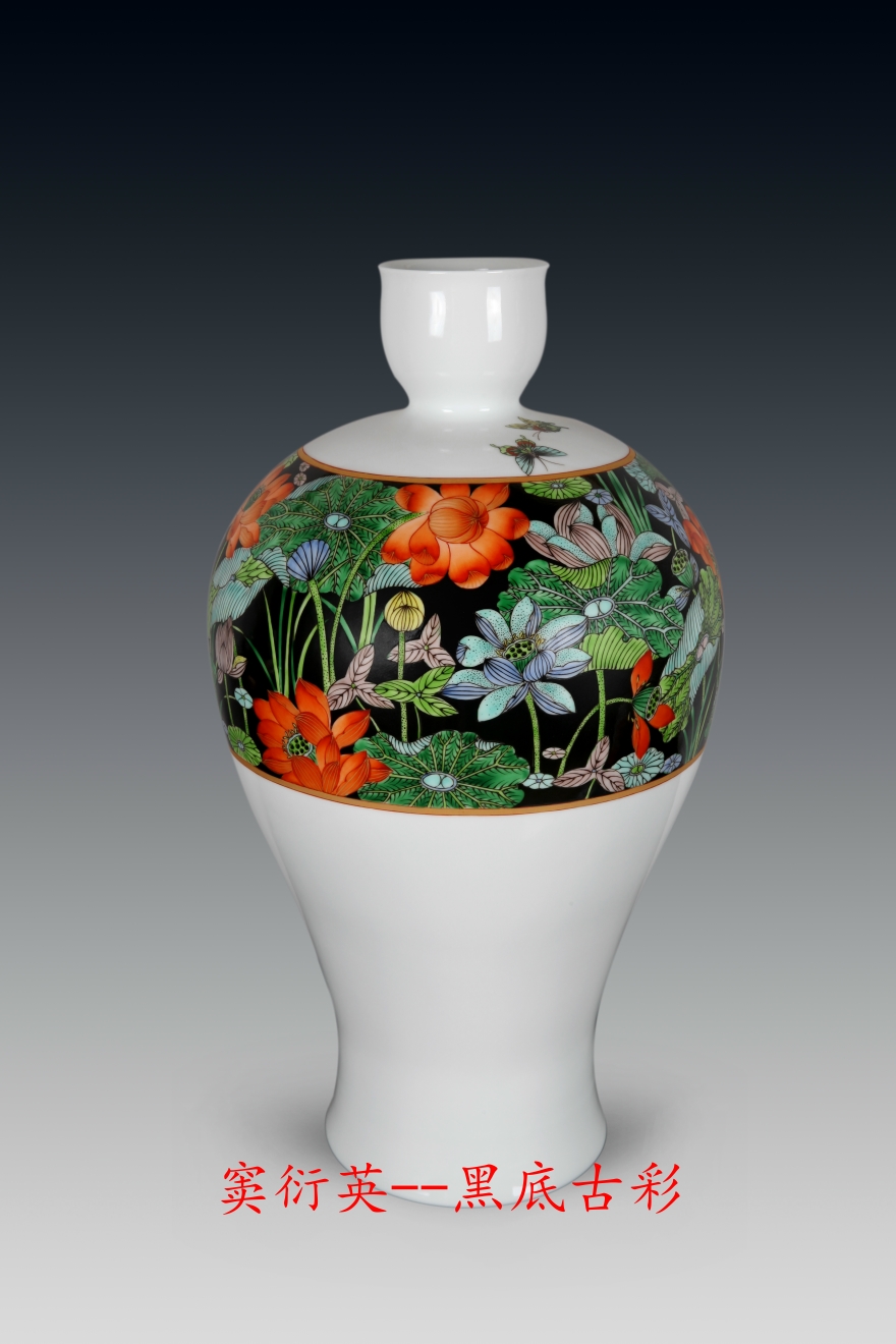 看一篇介绍窦衍英的黑底古彩之文,一下子就吸引了我: 黑底古彩。有一种别样的感觉!黑底古彩是古彩中一个分支,工艺难度高,技术要求高,历史上均是官窑出品。出自窦衍英之手的现代黑底古彩作品,第一眼就引人入胜。