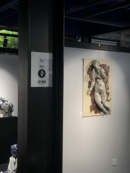 对展品,作者用的是“乐活”这样一个词。是的,这就是创作者意欲展现平常生活。道德的面具和那个被放大的自我层层包裹的硬壳——每天都热热闹闹和别人轮番上演着暮暮或悲或喜,或真或假的戏码,这都是壳外的世界。展品中的“他们”、“别人”或可或不可地存在着。看着他们的面孔、触摸着他们的形体,或许听到他们摩擦与呢喃,是否每天与他们擦肩而过甚至紧紧挨在他们身旁,却凉薄地完全不在乎过他们的存在,生活在“生活”以外。从这个意义上讲,谢长敏的表达,像砸地鼠游戏中的那把锤子,击碎了生活的硬壳,让光照进来。那光,刺痛了观者的眼睛,藉着这道光,行过了社会漠然。