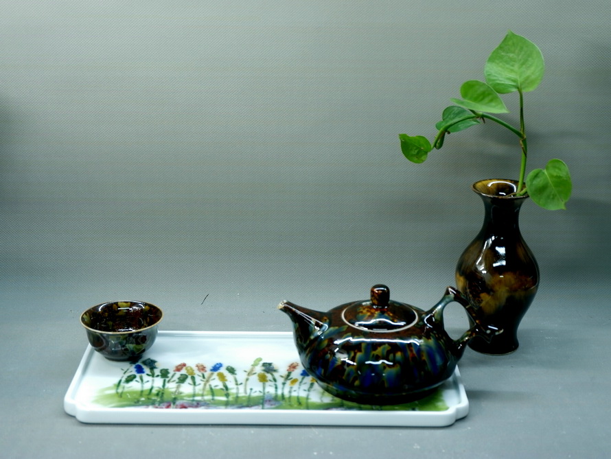 做颜色釉,这十年漫漫,究竟是笔底生花的喧哗,还是颜色釉登峰造极的璀璨,亦或是作品不同风情的种种浪漫,又或者那沧桑戏世的呃叹……唯其一二,均不足以定义这十年工匠人生的模样。回首那黑暗中苦苦的摸索、跌跌撞撞、一坎又一坷的追逐里,终因为这些作品都活成了轮回中的永恒,在这永恒中住着相识的曾经。