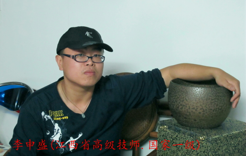 李申盛,1980年生,一位出生上海。2000年毕业于中国地质大学(武汉)珠宝系。2007年跟随母亲来到景德镇,从陶瓷经纪人开始涉足陶瓷创作圈的青年才俊,凭借天生的悟性和灵感,在高温颜色釉创作领域取得突破性成绩,成长为一名具有很大潜力的艺术家,如今已是江西省高级工艺美术师、景德镇市高级陶瓷美术师、江西省高级技师(国家一级)。 李申盛近年来专业研究制作高温颜色釉器件,取得长足的进步,创作并拥有了具有他们个人特色的金铜、岩画、梦幻、火山、老铁、洒彩、雪莲、玳琩、牡丹、青金、桑田、竞彩等十几个系列的高温颜色釉作品,丰富了当代景德镇高温窑变釉的品种和内容,取得了玳瑁釉、五彩釉等10项国家专利。作品得到茶友和藏友的热情欢迎,得到陶瓷界的认真关注。所有这一切,给予他莫大的鼓舞。