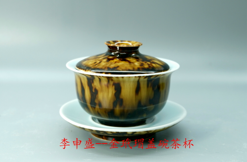 李申盛研究古代江西吉州窑、四川西坝窑等窑口的玳瑁碗盏的色泽纹理;基本上只有一种黄色的斑纹,一色黑褐的底釉,而且都是陶器,烧制温度不高,均属中温陶瓷(摄氏1000℃下烧制为低温,1000--1200℃为中温,1200℃以上为高温。)80年代,位于景德镇的“中国轻工业陶瓷研究所”曾成功研制玳瑁釉。但是没有形成生产。其中一个样品出现在2014年“中国轻工业陶瓷研究所60年拍卖专场会”