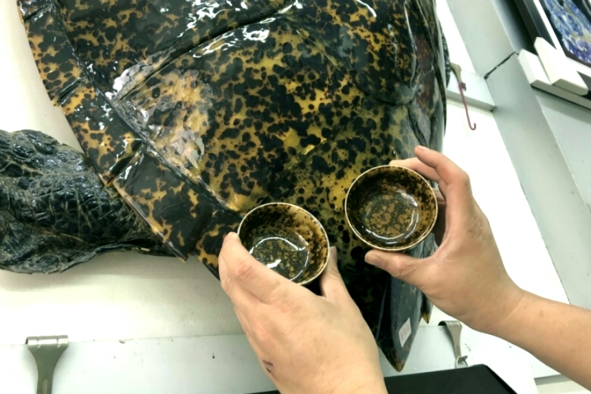 李申盛很快赶回来,专家开口第一句话就是,“你这个玳瑁做得好,比老的玳瑁好,现在的条件要比古代强。比日本、台湾的玳瑁做得好!”这个突如其来的评价对李申盛很是意外,因为发声的是国家级别的鉴定专家;真的是很给力!