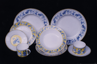 在“建国瓷”的设计之初,设计委员会就提出要体现我国传统的陶瓷艺术风格。造型以保留在原北京东华门萃华楼饭庄的清宫廷慈禧用“万寿无疆”中餐具为蓝本.本着古为今用.洋为中用的精神,简化旧时中餐宴会的繁琐配套,按新中国宴请形式,以实用为标准。在保留了大部分原有造型的同时.对餐具中的酒具、茶具作了重新设计。单件具体尺寸普遍偏大。在汇集了大量的设计方案后.几番省稿、易稿,确定了祝大年设计的传统青白瓷斗彩缠枝牡丹纹中餐具:青花海棠纹西餐具各一套。祝大年教授曾在日本师从著名的陶艺家北大鲁山人学习日本传统陶艺。整个装饰吸取了敦煌图案的结构及风格特点。设计中参考了大量非陶瓷的传统艺术资料.如染织、青铜器、漆器等,充分体现了学习传统,却不仅仅囿于陶瓷,而是整个传统艺术这个宽泛的“大传统概念”。对于今天的陶瓷艺术工作者而言,它仍有积极的意义。就当时对陶瓷艺术设计的认识而言,重点在装饰的图案上。设计稿的表现亦着重装饰纹样的绘制。因当时瓷器的装饰均由手工绘制.为保证装饰设计样稿的清晰、标准,从前门国画生产合作社请来了著名工笔画家陈大章、门永华、翁振庆等先生描图、画样。在整个设计过程中,得到了国家及社会许多知名人事的关注。文化部从故宫博物院调来多件康、雍、乾时期的陶瓷实物.以供参考。此批文物后留在实用美术系,成为后来中央工艺美术学院的主要院藏品。沈从文先生也拿来原故宫散点图案的墙纸以供参考。事实上,当时许多知名艺术家都参与了“建国瓷”的设计与指导工作,如:庞熏栗、雷圭元、徐振鹏、祝大年、高庄、郑可、郑乃衡、梅建鹰等等。为确保成瓷与设计样稿的一致性,时为陶瓷科主任的祝大年与高庄、郑可、梅建鹰带学生4人,进修生1人在1 952年暑期来到景德镇开始试制工作。