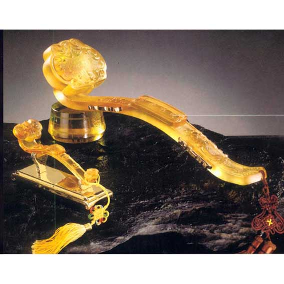 “如意”,又称“握君”、“执友”或“谈柄”,由古代的笏和搔杖演变而来,多呈S形,类似于北斗七星的形状。魏晋南北朝时期,如意的形制以柄首呈屈曲手掌式为主流;唐代发展为柄身扁平,顶端弯折处演变为颈部,柄首为三瓣卷云式造型。明清两代,如意发展到鼎盛时期,因其珍贵的材质和精巧的工艺而广为流行,以灵芝造型为主的如意更被赋予了吉祥驱邪的涵义,成为承载祈福禳安等美好愿望的贵重礼品。臣子们常进献如意祝贺皇室寿辰,皇族也拿如意赏赐王公大臣,如意渐渐地成了上层人物权力和财富的象征。而在明末时期,如意更因其特有的雅致,成为崇尚古风的文人墨客的文房玩赏物件。