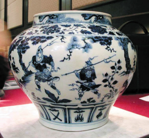 元青花瓷尤以人物画最为珍贵。2005年,一件名为“鬼谷下山”(上图)的元代青花图瓷罐曾在伦敦拍出1568.8万英镑的高价,从而创下当时中国艺术品拍卖的最高成交价。