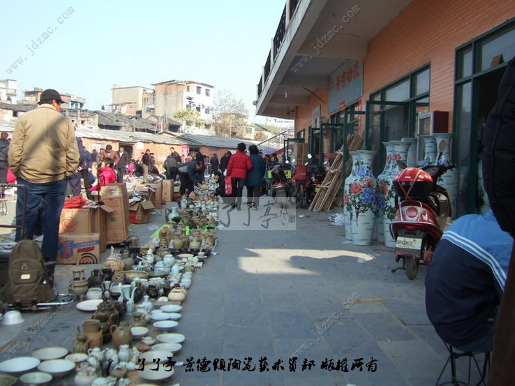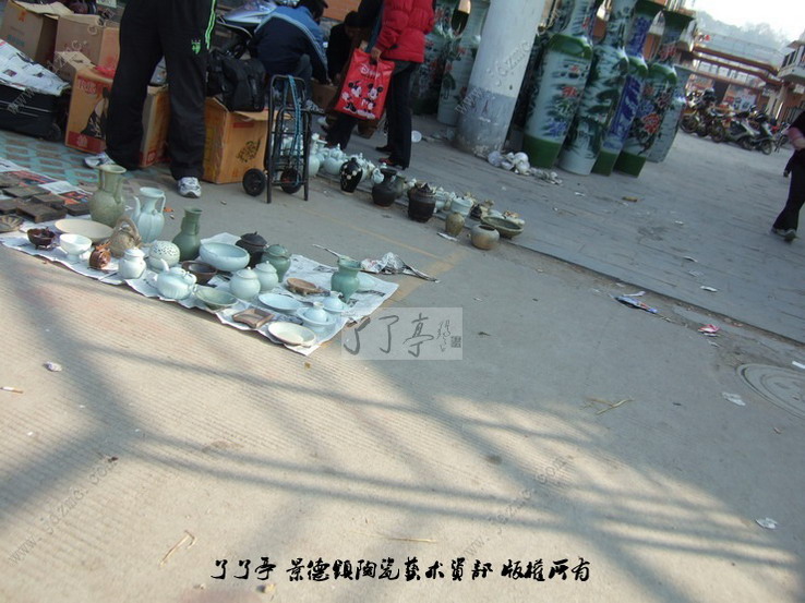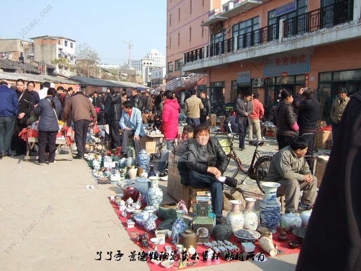 这一市场的形成还只是近几年的事,摊贩多来自于景德镇周边地区来景务工的农民以及部分下岗工人等。他们的货源,主要从附近乡村收购,而赝品则来源于市区樊家井、筲箕坞等几个规模很大的仿古瓷生产基地,古瓷残片则在散布于全市城乡的建筑工地及未受保护的民窑遗址等处挖取或拾取。
