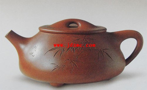 以“泥片镶接、身筒拍打法”为基本特点的紫砂传统加工方法,几百年来经过艺师们的心手相传, 紫砂壶的手工技法匠心独运。那么我们又如何看待“手工”和“模具”呢?笔者认为紫砂作品只有坚持传统手工过程才有生命力, 用模具的方法寻求数量的增加、降低加工难度的方法不足取。紫砂壶作为一件实用品时可以不考虑其加工方法,但用作收藏,加工方法必须作为一个重要因素,但不是唯一因素。区别手工和模具的标准是什么?不管手工或模具, 过程中均离不开手, 同时部分工具和模具的区别不明显, 从而用纯粹的标准去区分二者会陷入形而上学的怪圈, 因此我个人的观点是一种广义的, 主要还是看加工方法过程。只用传统方法或以传统方法为主, 辅以模具或专用工具均是为了加强作品的表现力, 可以定义为手工; 以提高作品的加工速度从而获得相应的数量或以降低加工的难度为目的,忽视手的技巧和传统技法的应用, 可以定义为模具。那么作为紫砂壶的从业人员什么时候或什么地方该用手?什么时候或什么地方又该用模具?笔者认为手工能做的就不应该用模具,像一把仿古的身筒的加工: 手工达不到或手工出来的效果不及模具或成品率低, 可以辅以模具, 像曲壶的加工。如果为了加强作品的表现力而使用模具, 不会降低作品的价值,但应该用手的地方不用手, 就会降低作品的难度, 从而降低,作品的价值;使用模具过程所产生的痕迹必须修理干净, 不然同样会降低作品的价值。人是有主观能动性,手工加工方法会产生美学或视觉上的独特效果,再好的模具也不能取代手工制作方法。