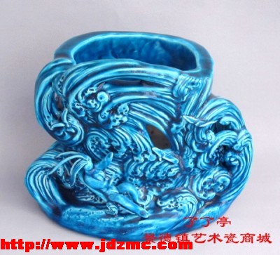 图为:"争流冲浪".珐翠釉堆捏雕.刘超鸿(景德镇陶瓷学院美术系付教授.)