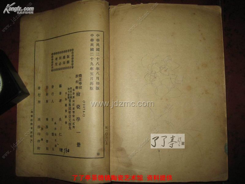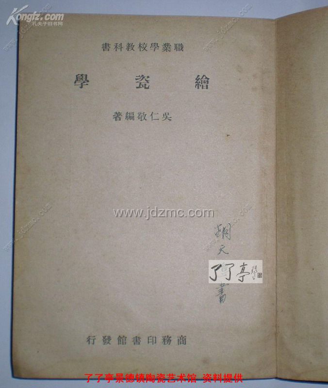内容包括绘瓷制法,材料,绘瓷种类及方法,瓷器上面之花纹装饰,瓷板绘像,瓷上其他彩饰法,绘瓷材料配方等。《绘瓷学》是中国第一本专门研究绘瓷的著述,是既有理论,又有实用价值的教学用书。作者吴仁敬也是绘瓷高手,谙熟绘瓷的各种技艺与程序,所以他的著作不仅有学术成果,也被当时教育部门指定为职业教科书。而此书对于今天搞民国绘瓷收藏,有极大的帮助。