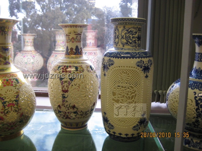 这个大的镂空象牙瓷花瓶造型沿袭明代,雕工细致,毫无瑕疵,尺寸将近45厘米,非常适合我家的博古架。