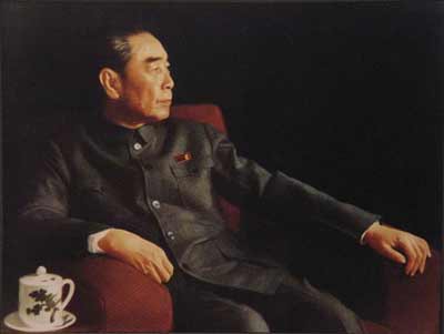 这张周恩来总理的照片在上世纪七、八十年代流传非常广泛。这张照片是意大利摄影师焦尔乔·洛迪拍摄的。洛迪于1973年1月6日以<<时代>>周刊记者身份随意大利外长梅迪奇访华,在人民大会堂受到周总理接见。当时不允许带照像机参加接见,洛迪不愿放弃这千载难逢的机遇,私带相机,恳请周恩来照张像,周总理乐意接受了请求。照片拍出来后效果非常好,有题名为:沉思中的周恩来在八十年代这张照片被称为最能表达周总理当时心理状态的摄影作品,印量达9000万张以上。邓颖超生前也非常喜爱这张照片,后来还特意接见了洛迪的夫人。在这张<<沉思的周恩来>>照片中我们看到左下角有一个醒目的茶杯,这个茶杯后来被人称为"周恩来用瓷",其实这就是一个人民大会堂的普通茶杯,周总理生前没有特制过瓷器。这个茶杯的生产厂家就是湖南醴陵群力瓷厂,也是生产"毛瓷"的厂家。群力瓷厂于一九五七年建厂,主要生产艺术瓷器,一九六四年周恩来亲自选该厂为人民大会堂生产专用瓷。同时,该厂还为中南海、天安门城楼、钓鱼台国宾馆、联合国大厦生产专用瓷。照片中的松树茶杯,全名:园顶直桶胜利杯。高13厘米,内径8.5厘米,茶杯和杯托盖有大会堂字样的印章,原作图案均为手工绘制,非常珍贵。后该厂生产了批量贴花产品。群力瓷厂至今仍为国家重要的专用瓷生产厂家。(宋友范)