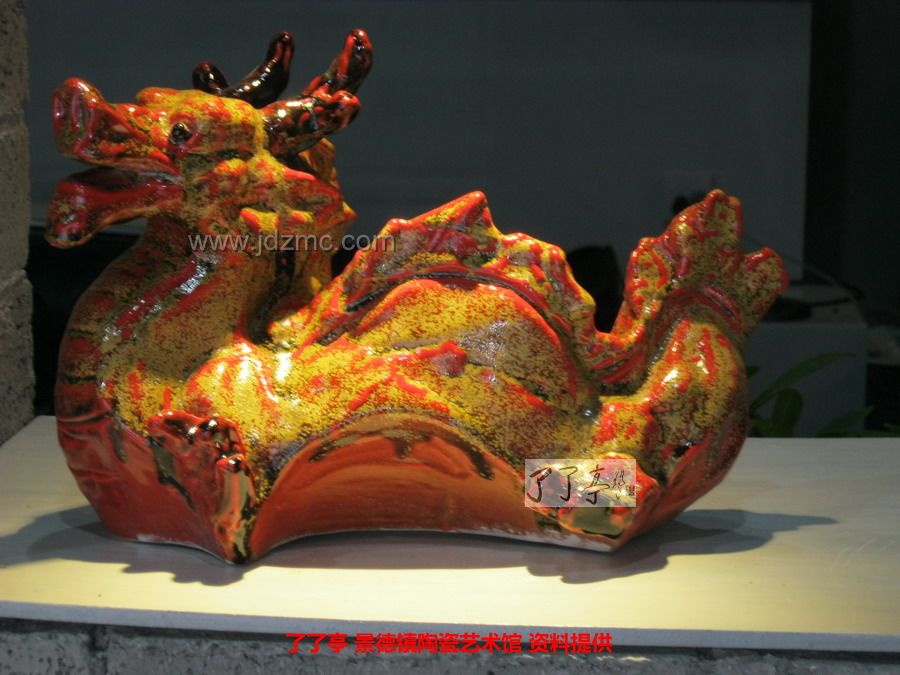 市场上时时看到各种龙的陶瓷作品,但这些龙都是黑压压一片云雾中张牙舞爪,面貌狰狞,很恐怖,似凶神恶煞,我觉得这样龙塑造的不好。龙是我们祖先创造的虚拟的东西,既然是虚拟的,就应该把它塑造的很美,画出一种心境,一种精神。从美术创作的角度来看,塑造龙应该是最自由的题材了,它可以成为无限的想象,或大气、或质朴、或简洁、或喜气,或传达着一种威武气概。