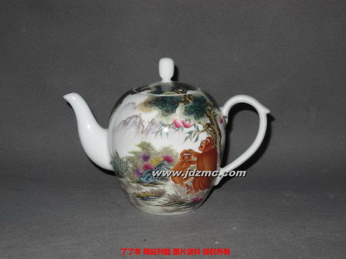 老金在文化圈里混迹多年,2008年汶川大地震过后那一次慈善艺卖,我们就是按照老金亲手写下的电话、地址,一一上门遍访艺术大家,请他们赐墨宝、丹青,贡献爱心的。老金在艺术圈里的宽广人脉以及多年练就的独到艺术眼光,让他在选壶时极为讲究与挑剔。他有一只豆青釉蜂蝶纹瓜式茶壶,漂亮的形制、精制的彩绘让见过的人都艳羡不已,不过老金很实事求是,他向我们承认,那只不过是仿品,他自己确实有一只乾隆时的真品,只可惜缺了壶盖,不然价值连城不在话下。