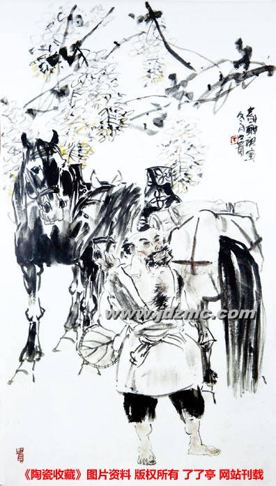 陶瓷绘画对水墨风味的追求,一直是个重要目标,近代画家对陶瓷绘画的广泛参与,将这种风尚推向了新的高度,在各种陶瓷展示会上,经常会见到不同类型的水墨形式的作品,在书刊杂志上,也常有水墨、墨彩等类似的称谓。但在工艺手法上,都与本技术有着实质性的区别。