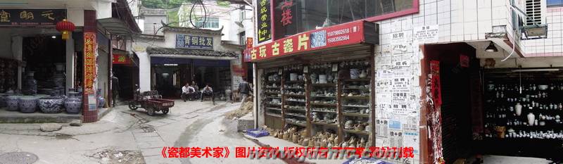 樊家井地处景德镇火车站附近,这里原本是农村,住着近千户人家。自打上世纪90 年代仿古瓷火了以后,当地农民有人干起了陶瓷买卖,有人将房屋租给外地来的瓷业个体户,使这里逐步演变为一个具有四百余家个体作坊、专门从事古瓷仿造和交易活动的集散地。先是被当地人称作“抚州佬”、“南昌佬”的景德镇瓷器贩子长年来往于此,后来随着元明清三代官窑瓷的热销,这里渐渐聚集了包括港台在内的全国各地的陶商瓷贩。近两年,日本、新加坡等国家的文物商人,也在此地频繁出没。
