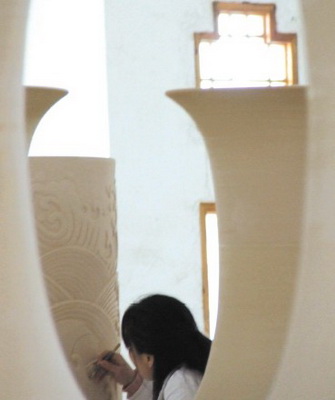 陶瓷大世界古玩市场第一家店的女主人姓张,她是婺源人,原来在一所学校做民办老师,因丈夫由古玩改行做茶叶生意了,所以就让她辞职留守。按张女士的说法,这里的古玩市场原来很好,但自从国贸广场开业后,一些店主纷纷迁徙,店面分散自然使客户分散,从此后生意便陡然下降。近几天,她见到几个国贸广场的老板,都说想移到锦绣昌南去,而有些人又认为搬到锦绣昌南还不如去中国陶瓷城。现在张女士又多了一份担心,如果有限的市场再分一块甚至更多,那生意将更难做了。她很希望有一个市场兴起,然后淘汰其他市场,因为所有同样的店都全部集中在一起,生意就好做。