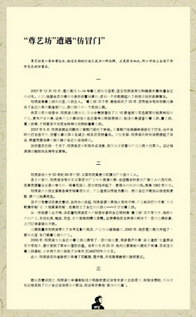 尊艺坊是一家私营企业,经过长期的打造已成为一种品牌。正是因为如此,所以市场上出现了形形色色的仿冒品。