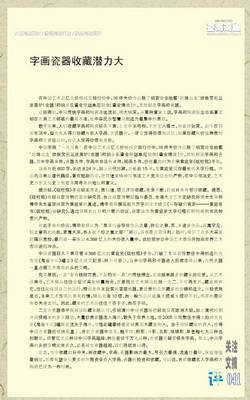 数千年来,人们收藏字画和陶瓷经久不衰,上至帝王将相,下至文人雅士,皆喜好玩赏。如今在现实生活中,每当有人得知你藏有名人字画、古瓷器时,一定会觉得你很有品位;如果你藏有价值昂贵的字画和古瓷珍品时,会让人觉得你很有身价。